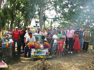 The big event, the following day, was traveling to a cemetery to honor Ana's mother, who passed away around 11 years ago. The women brought food and cleaning supplies for the tomb. The men cleared the brush from the area with machetes and rakes. The children played.